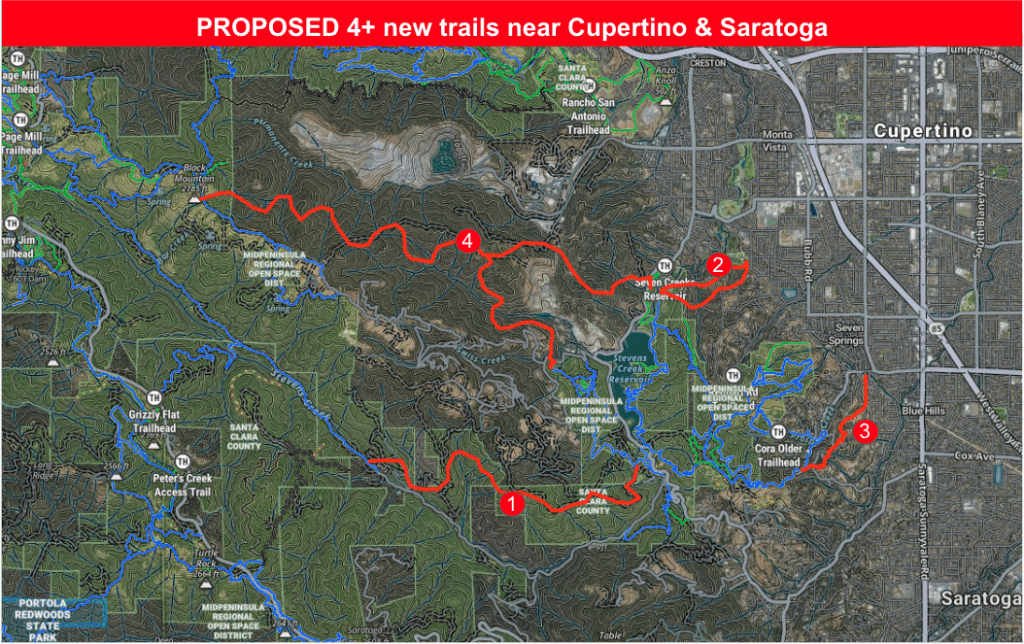 We’re focusing on key trail access and development opportunities in the Saratoga & Cupertino Areas. These priorities reflect feedback from riders, local advocates, and trail history. Details and Maps Below!