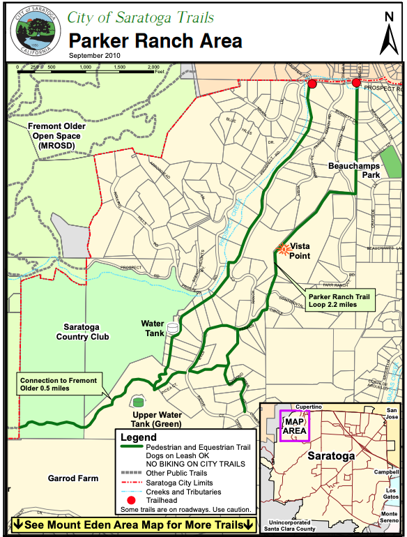 - Revisit bike access on the Parker Ranch Trail in Saratoga, which connects Prospect Rd to Parker Ranch Rd.