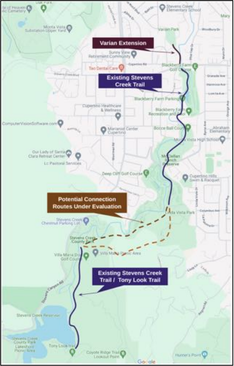- Would give Cupertino residents and trail users direct access to Stevens Creek County Park and Fremont Older Preserve without riding the heavily traveled Stevens Canyon Rd.